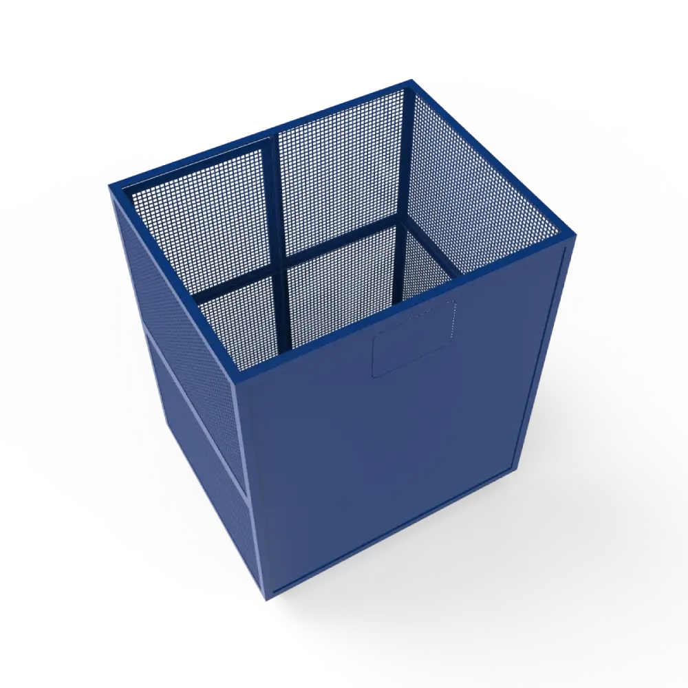Kava recycling cage features front and top openings with back doors for easy waste management made from sturdy Mild Steel with a powder-coated zinc-rich primer. Ideal for public and commercial recycling.